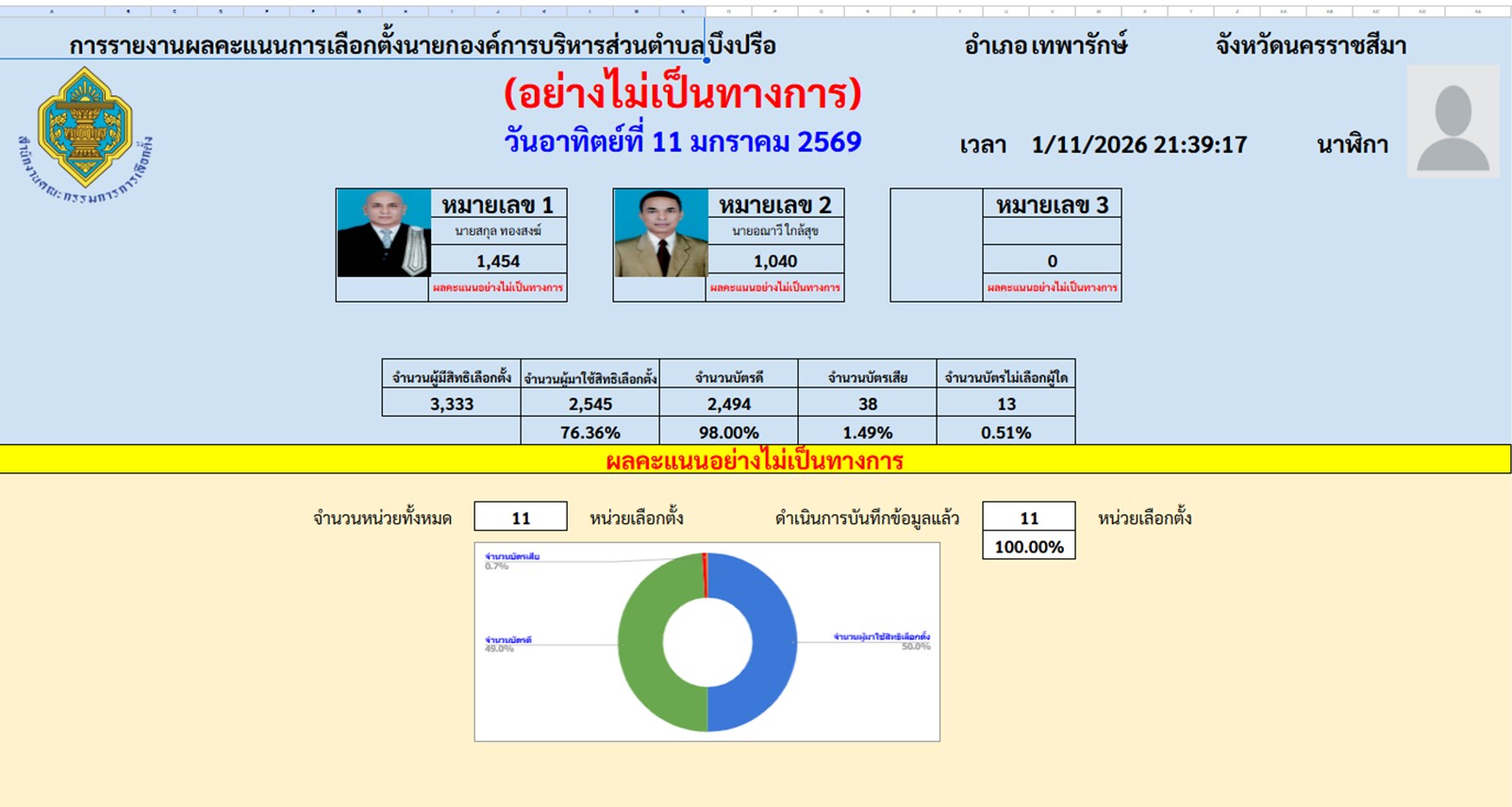 ประกาศผลคะแนนการเลือกตั้งสมาชิกสภาและนายกองค์การบร...