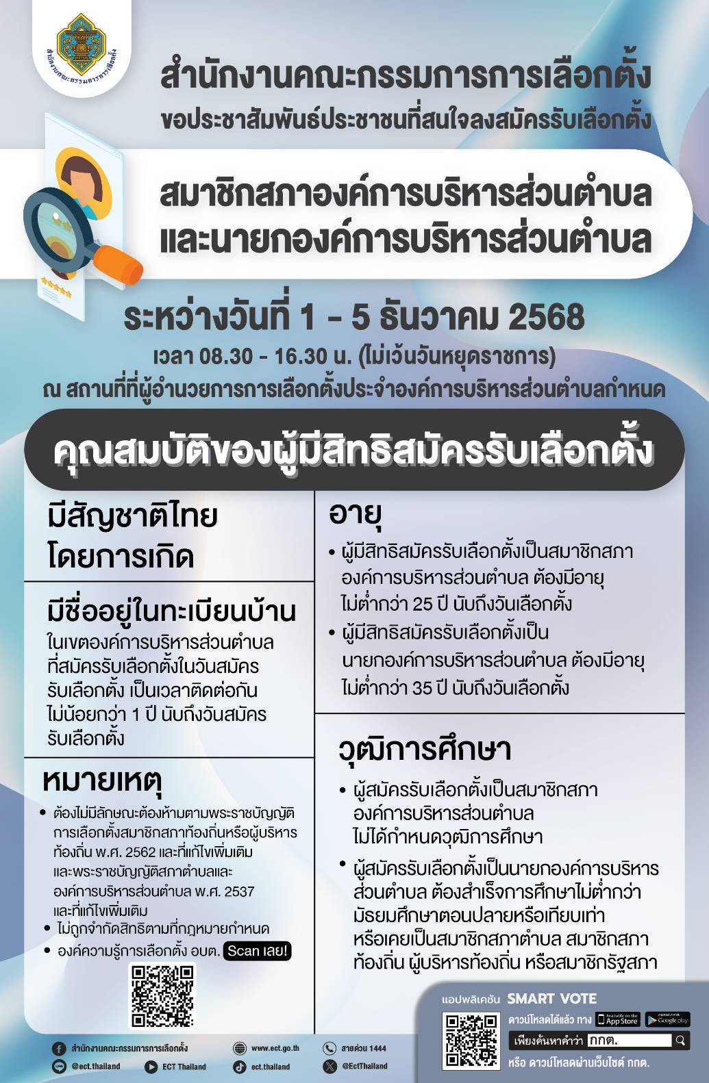 ประชาสัมพันธ์ คุณสมบัติและลักษณะต้องห้ามของผู้สมัครรับเลือกตั้งสมาชิก อบต. และนายก อบต.